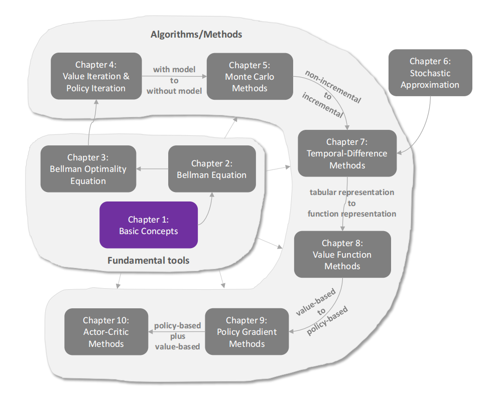 本章介绍了强化学习的基本概念。这些概念在本书中被广泛使用。我们首先通过