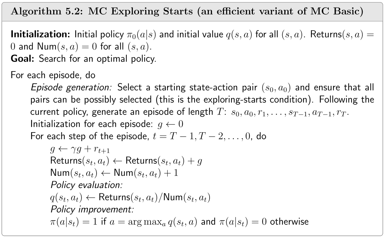 算法\(5.2\): MC Exploring Starts(MC Basic算法的一种高效变体)